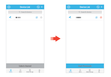 After successfully adding the DVR, it will be listed on the interface of Device List. Tap the icon and Start Preview to view the live videos from all channels.